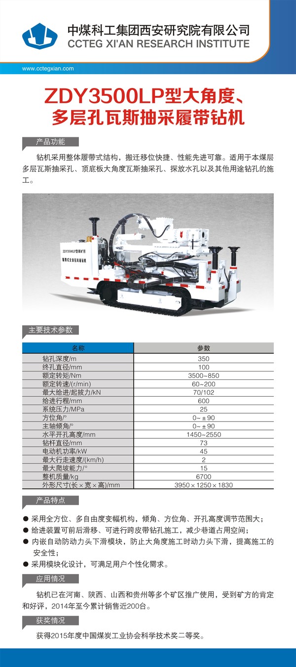 ZDY3500LP型大角度、多层孔瓦斯抽采履带钻机