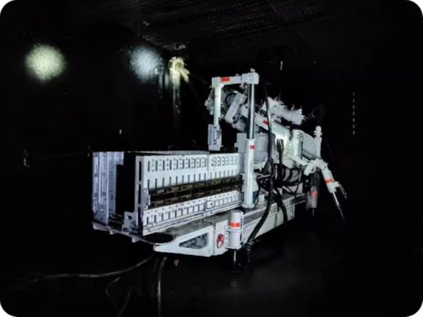 2022年12月,该系统在淮南矿业集团应用于施工碎软煤层顺层钻孔。“一键自动扫孔” “自动防卡钻”等诸多先进功能和150米大容量模块化自动杆仓很好的满足了本煤层钻孔施工要求,施工过程无需二次填补杆仓。碎软煤层本煤层钻孔施工台效达到2600米/月,单班最大钻进孔深106米,钻孔成孔率93%,再一次验证了该系统的适用性和可靠性,为碎软煤层本煤层钻孔全自动施工提供了新的智能化解决方案。