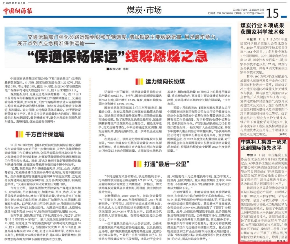 中煤科工集团一成果达到国际领先水平