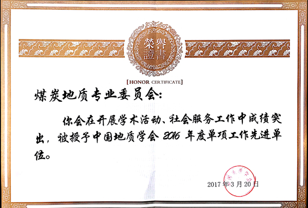 3月20日,中国地质学会在广东省珠海市召开了2017年度分支机构、省级地质学会秘书长工作会议暨科普工作会议。会议表彰了2016年度中国地质学会先进集体、先进工作者及年度单项工作先进单位。挂靠在西安研究院的煤炭地质专委会获得了“中国地质学会2016年度工作优秀奖”;同时煤炭地质专委会还获得了“学术活动先进单位”、“社会服务先进单位”两个2016年度单项工作先进单位奖项。