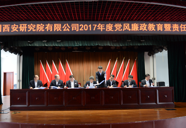 为进一步加强领导人员和关键岗位人员廉洁从业教育,推进西安研究院“两个责任”落实,4月11日下午,院党委、纪委在高新院区研发楼八楼报告厅组织召开了“2017年度党风廉政教育暨责任书签订会”,180多名院中层以上领导人员、专家和部分关键岗位人员参加了会议。会议由党委副书记、纪委书记周崇军主持。