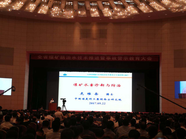 5月22日,山西省煤监局在山西省煤炭交易中心组织召开了山西省煤矿防治水技术推进暨事故警示教育大会,山西省各煤炭主体企业主要负责人、总工程师,各煤矿矿长、总工程师,各地市煤炭工业局局长、总工程师,52个重点产煤县煤炭工业局局长、总工程师,各煤矿安全监察分局(站)全体监察人员,山西省煤监局机关和有关事业单位人员共2000余人参加了大会。山西省副省长王赋出席会议并作了重要讲话,山西省煤监局党组书记、局长卜昌森就做好当前煤矿防治水工作作出安排部署。西安研究院副总经理、总工程师虎维岳特邀出席会议并作了“煤矿水害诊断与防治”为题的专题讲座,主要从矿井充水水源、充水通道和充水水量等方面分析了山西省矿井普遍存在的水害隐患,结合国内先进的技术和装备,就山西省煤矿水害存在的问题提出了具有针对性的诊断与防治方法,受到参会者的一致好评。
