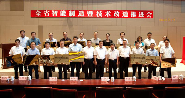 副总经理叶根飞、总经理助理姚宁平、制造中心副主任许翠华代表西安研究院参加会议,会议主要由企业现场培训学习、推进交流会、授牌仪式三个环节构成。与会人员首先参观了西电西开电气和博世力士乐,随后举行了推介交流会,会议确定成立陕西省高端装备与智能制造产业发展研究院并为其举行揭牌、授牌仪式。副省长姜峰和西安交通大学校长王树国参加了揭牌、授牌仪式,叶根飞副总经理代表西安研究院参加了陕西省智能制造试点示范企业(20户)授牌仪式。这份荣誉既是对西安研究院近年来智能制造产业工作成绩的肯定,也为西安研究院持续开展智能制造,以期取得更大成绩提供了坚强动力。