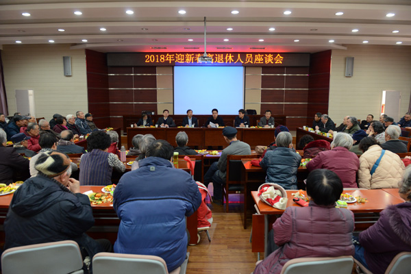 2月8日上午,西安研究院2018年迎新春离退休人员座谈会在碑林院区二楼报告厅举行。董事长、党委书记董书宁,总经理叶根飞,党委副书记、纪委书记、工会主席周崇军,副总经理杜建锋,以及相关部门负责人、离退休人员代表,共计110余人参加了座谈会。