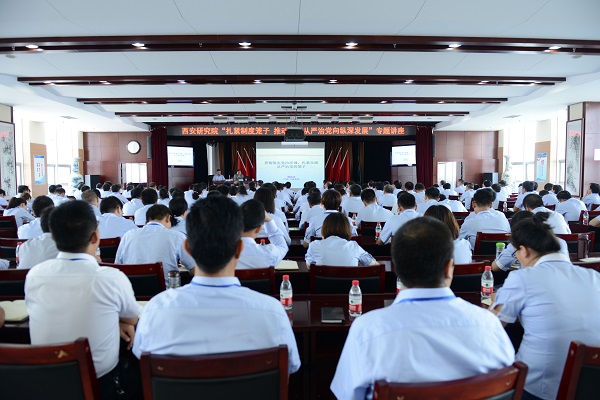 为认真贯彻党的十九大及十九届中纪委二次全会精神,积极落实全面从严治党要求,坚定不移推进全面从严治党向纵深发展,5月16日上午,西安研究院特邀集团公司党委常委、纪委书记秦永法作“扎紧制度笼子、推进全面从严治党向纵深发展”专题讲座。院领导班子成员,中层及以上领导人员(含助理),院专家、营销高级岗、技师高级岗人员,各党总支、直属党支部纪检委员和部分关键岗位人员等180余人参加了会议,会议由院党委书记、董事长董书宁主持。
