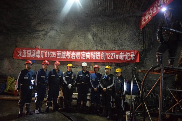 近日,由西安研究院钻井所承担并施工的鄂尔多斯市国源矿业开发有限责任公司龙王沟煤矿61605工作面顶底板定向钻工程取得突破性成果:61605主运顺槽绕道1#钻场1D-1钻孔终孔深达到1227m,打破了2017年西安研究院在巴彦高勒煤矿顶板定向钻孔1118m的孔深纪录,创造了基于岩层层位定向长钻孔的孔深国内新纪录,受到了国源矿业公司及龙王沟煤矿领导的高度赞扬。