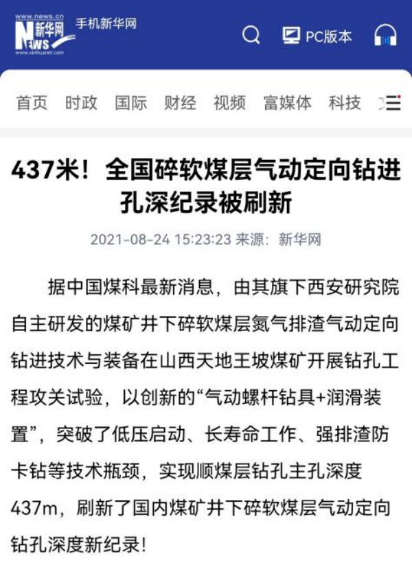 “煤矿井下定向钻进装备”成功入选第六批制造业单项冠军产品