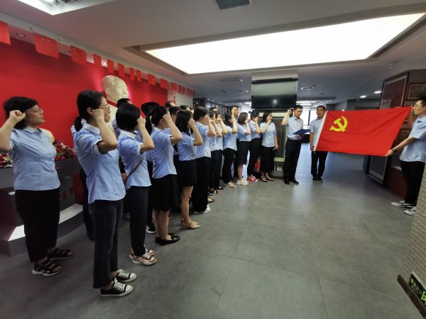 在庄严的党旗前,全体党员面向党旗,高举右手,重温入党誓词,提醒每一名党员要永远牢记入党时的铮铮誓言,践行初心使命,勇于担当作为。