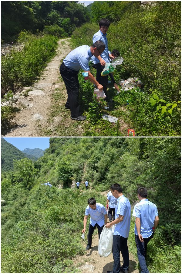 参观结束后,党员志愿者带上垃圾袋,沿灞源古道而上,开展了志愿服务活动,为保护秦岭生态环境贡献力量。大家发扬不怕脏、不怕苦、不怕累的精神,用双手捡拾白色垃圾和玻璃瓶,争做秦岭生态卫士。看着被清理干净的古道,发自肺腑的成就感和喜悦感在志愿者胸中升腾。
