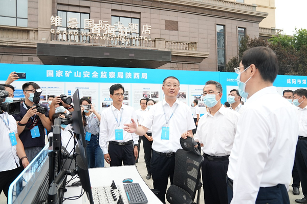 本次现场会,西安研究院展示了矿井水治-保-用一体化、矿山水害应急救援、透明地质保障和群组智能钻机、物探仪器等优势技术和先进装备。在智能钻机群组远控联动展示区,黄玉治等与会领导驻足观摩了西安研究院智能钻机动作展示,深入了解了智能钻机群组在彬长集团大佛寺煤矿瓦斯治理应用情况,高度评价了西安研究院在煤矿多源地质灾害防治与应急救援等方面作出的重要贡献。其他参会领导对西安研究院智能钻机及智能控制平台展现出浓厚兴趣,并围绕智能钻机技术特点、应用范围及巷道适应性等进行了深入的交流。