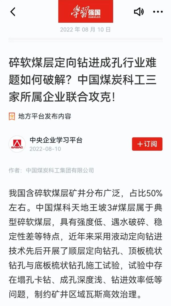 为解决天地王坡碎软煤层区域瓦斯治理难题,为晋城地区乃至全国碎软煤层区域瓦斯治理起到示范作用,在中国煤科统筹安排下,由所属西安研究院、天地王坡、沈阳研究院联合组建“碎软煤层氮气排渣气动定向钻进团队”,针对矿井碎软煤层氮气排渣气动定向钻进技术进行专项研究。