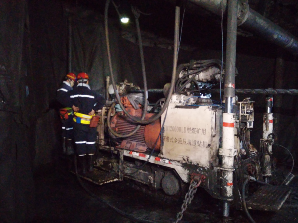 图为天地王坡井下气动定向钻进试验场景