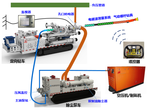 图为碎软煤层氮气排渣气动定向钻进成套装备集成