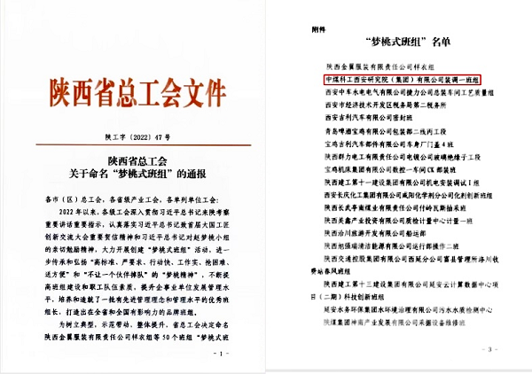 9月9日,陕西省总工会印发了《关于命名“梦桃式班组”的通报》,西安研究院钻探装备制造公司装调一班组荣获2022年“梦桃式班组”荣誉称号。