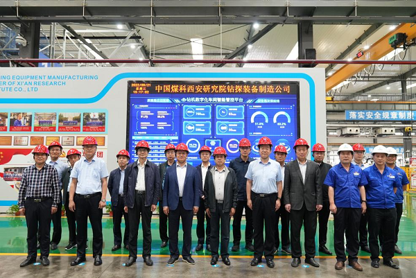会前,谢辉一行参观了西安研究院智能钻探装备生产基地、综合展览馆、智能化钻具生产车间及煤矿防治水重点实验室,详细了解了西安研究院的发展历程、重大成就和优势产业。