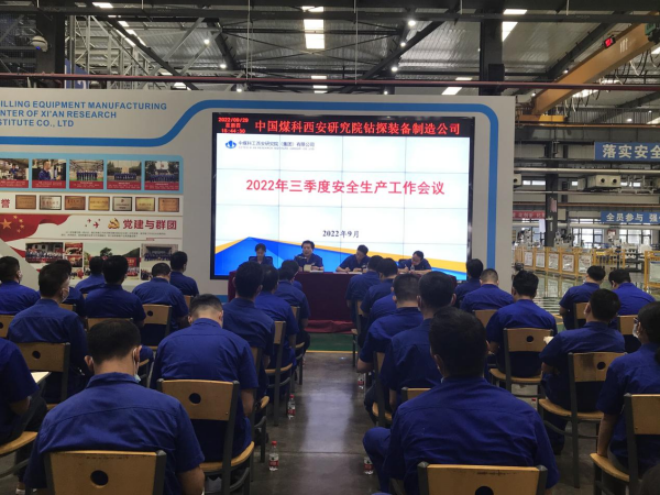 9月29日下午,西安研究院钻探装备制造公司在高新西院区召开了2022年第三季度安全生产工作会议暨“奋战一百天 喜迎二十大”总结表彰会,钻探装备制造公司领导、各科室负责人、班组长和安全员等共46人参加。会议由党总支书记、总经理田东庄主持。