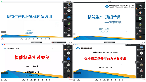 本次线上培训由四个部分组成,内容涉及精益生产、班组管理、智能制造、QC小组开展方法。钻探装备制造公司质量专员张晓亮从精益生产管理概念、如何开展精益生产工作、典型案例分享和制造公司精益管理内容及成果四方面对精益生产现场管理知识进行了讲述。装配一班班组长马勇立通过典型案例,为大家讲解了班组建设情况,分享了班组管理方面取得的成效。智能制造部(工艺技术部)陈彦宇向大家介绍了智能制造发展的过程和内涵,围绕智能制造典型案例阐述了产业转型发展的迫切性,并对正在实施的智能生产线建设进行了讲解。品质控制部主任戴勇波从QC小组的申报流程、活动开展的程序、统计方法及应注意的问题对QC小组活动开展的方法和要求进行了详细介绍。
