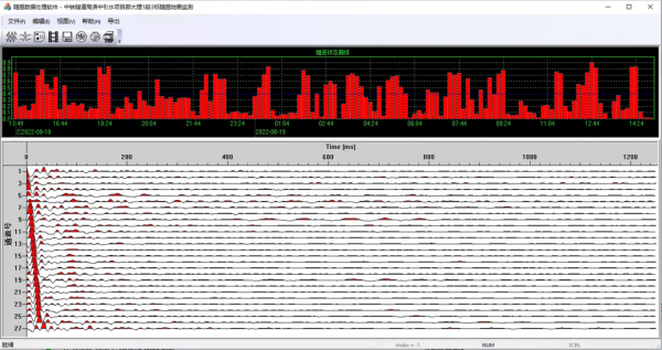 香炉山隧洞是整个滇中引水工程咽喉控制段工程,隧洞总长约62.596千米,隧洞施工面临岩溶溶洞、破碎、涌水突泥、软岩大变硬、活动大断裂、岩爆和高地震烈度带等技术难题。为实时超前预报TBM掘进前方的地质构造,西安研究院自主研发的YSD-3随掘地震超前探测系统在该工程进行了为期3个月的现场试验,西安研究院物探仪器所西南区域负责人和科技创新研究院相关负责人全程负责本次试验。6月27日开始现场踏勘并制定实验方案,7月14日完成硬件施工并进行系统调试,8月8日开始连续探测,监测时间共计22天,随后结合地质分析对探测数据进行解释。
