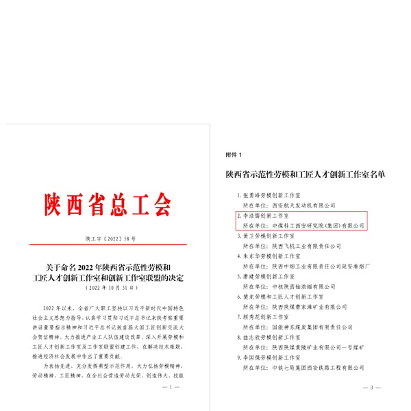 近日,陕西省总工会命名了2022年陕西省示范性劳模和工匠人才创新工作室联盟,此次全省共有20个示范性劳模和工匠人才创新工作室获此殊荣,西安研究院李浩儒创新工作室为其中一员。