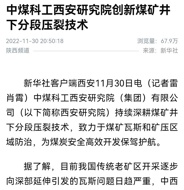 针对以上行业痛点,中煤科工西安研究院(集团)有限公司(以下简称西安研究院)成立瓦斯与矿压研发团队,创新性地提出了煤矿井下定向长钻孔分段水力压裂技术,研发了煤矿井下分段压裂装备,实现了碎软煤层瓦斯高效抽采和坚硬顶板区域超前治理,有效地破解了行业难题。