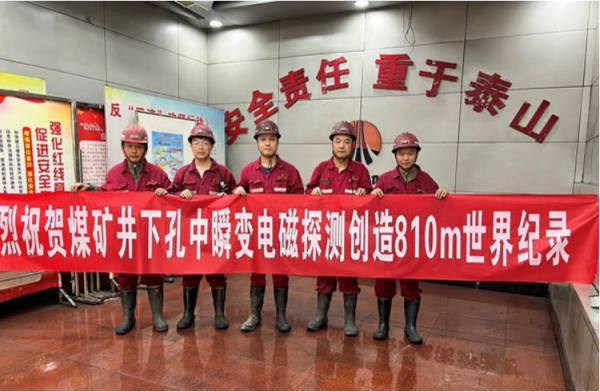 2022年,西安研究院自主研制的YCSZ煤矿井下钻孔瞬变电磁技术与装备在陕西某煤矿成功实现810米远距离超前探测。在提前采取安全预防措施情况下,成功避免了一次可能的水害事故,同时为矿方节约成本300余万元,打破了煤矿井下掘进工作面最远水害超前探测世界纪录,标志着我国“长掘长探”水害超前探测技术日趋成熟,具备了支撑保障巷道快速安全掘进的条件。