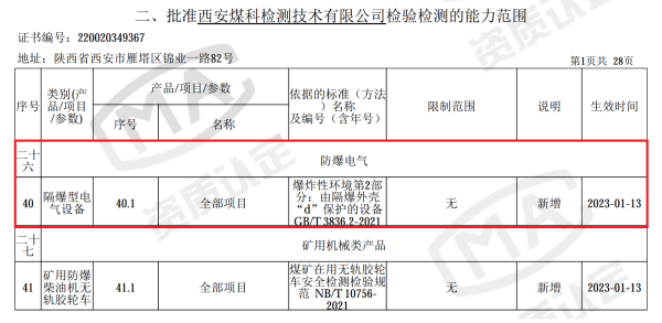 1月16日,西安煤科检测技术有限公司顺利通过国家认证认可监督管理委员会CMA“隔爆型电气设备”扩项申请,这标志着检测公司已经具备开展“隔爆型电气设备”的计量认证检测检验资质。