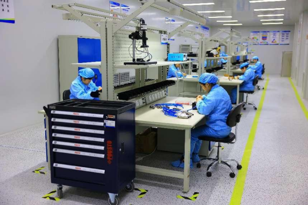 智控所生产车间位于高新院区1号厂房南一跨,占地800余平方米,包括生产车间、功能测试实验室、动作模拟实验室、智能仓储、技术装备展示厅共5个区域。生产车间为“装备制造向高端智能转型”“抢抓智能矿山新机遇”的重要实施阵地。配备有10组装配工作台,2组焊接工作台,1组综合过程检测工作台。采用10万等级净化,配有恒温恒湿的空调控制系统。智能仓储作为生产各类电控产品所需原材料及半成品的储存区域,采用人脸识别系统进行进出作业。