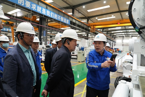 4月14日,中国煤科党委副书记、总经理赵永峰,天地科技总经理张林一行到西安研究院调研指导工作。调研组先后实地参观了西安研究院智能钻探装备生产基地钻机数字化车间、智能化钻具生产车间、智能运营调度中心,秦创原科创中心透明矿井所、地热公司等地,现场与装配工人、技术专家和管理人员深入交谈,并对西安研究院的生产经营工作进行指导。