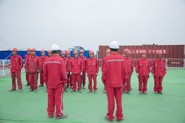 会议期间,在ZJ40钻机井场进行了防井喷专项应急演练,模拟在施工过程中泥浆工发现溢流并发出警告,应急响应启动,各岗位人员迅速按照“四七”动作进行关井、压井处理,应对突发溢流、井喷等事故的发生。