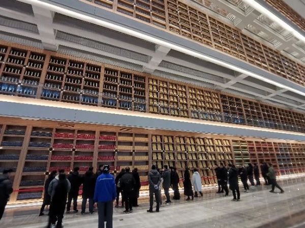 西安国家版本馆位于陕西省西安市鄠邑区秦岭圭峰山,是中国国家版本馆“一总三分”的分馆之一,也是国家版本资源总库和中华文化种子基因库。党员同志们在讲解员的带领下参观了1800平米的巨大书墙、文济阁展厅,以及结合陕西文化特色,精心设置两个展馆——“赓续文脉 踔力前行—中华文化经典版本展厅”和“楮墨遗珍 万里同风—丝绸之路版本展厅”。现场学习中华文明的历史渊源和发展脉络,感受丝路文化的发展与传承,体会版本背后强大的文化生命力及其承载的家国情怀。参观过程中,同志们认真听取讲解、驻足观看、交流感受,通过亲身体验参观感悟中华文化的深厚底蕴和中华文脉的时代价值,进一步增强文化自觉,坚定文化自信。