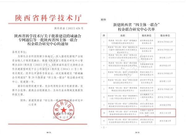 近期,陕西省科技厅发布了《关于批准建设一批陕西省“四主体一联合”校企联合研究中心的通知》,由中国煤科西安研究院牵头,联合西北工业大学申报的矿用钻探装备柔性智造校企联合研究中心(简称“研究中心”)成功获批组建。