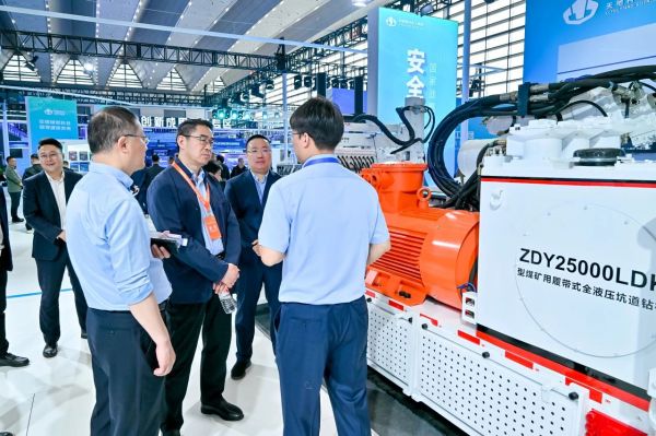 西安研究院展出的ZDY25000LDK大功率自动化系列定向钻机,是一种采用电液一体化控制和遥控操作,具备大转矩输出,适用于大直径近水平深孔钻进的履带式自行走全液压动力头式坑道钻机。