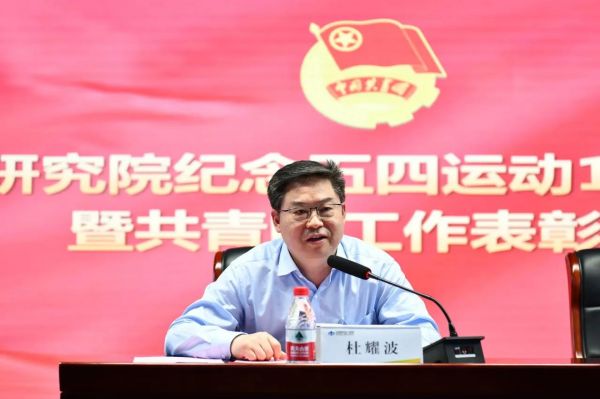 杜耀波向受到大会表彰的集体、个人表示祝贺,就亲身经历分享了在企业治理、人才培养、认知理念等方面的宝贵经验和真知灼见,并深情寄语青年:要敢于付出超常的努力,心无旁骛、追求卓越,筑牢成长成才的基石;要善于突破思维定势,在逆境中保持坚韧,用积极行动应对困难,磨炼韧劲、冲劲;要乐于吃苦、锐意进取,在西安研究院这个宽广的成长平台上不断提升自己,实现个人和企业的双赢,收获快乐、充实的生活。同时,他对广大团员青年和共青团工作提出三点希望:一是从党的二十大精神和五四精神中汲取前进动力,坚守初心使命,坚定理想信念,不断砥砺忠诚企业的青春志气;二是勇担建功之责,守正创新、担当作为,不断强化奋勇争先的青春锐气;三是笃学实干、修炼内功,努力成为可堪大用的栋梁之才,不断强化能担重任的青春底气。